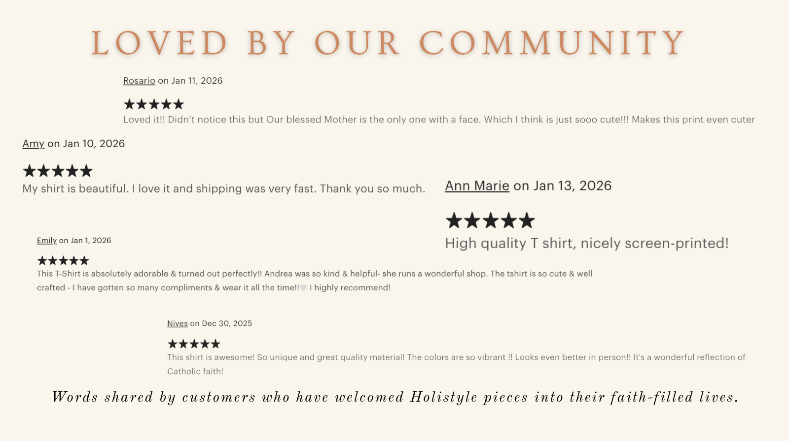 Holistyle Catholic Shop was created from a love for design and a deep desire to share the beauty of the Catholic faith through meaningful, thoughtfully crafted pieces.